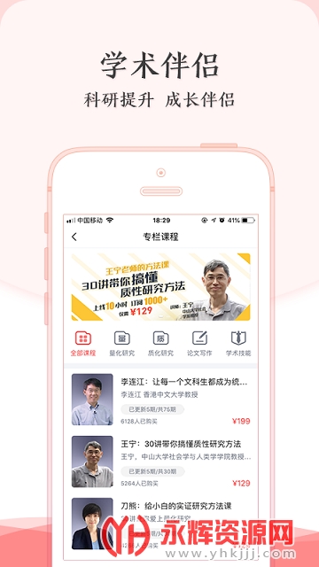 学术志app网课是一款非常专业的掌上教育教学培训手机软件,软件中为用户带来了非常丰富的优质课程可以随时参考学习,里面包含的课程类型也是比较的多样,权威专家答题解惑,学长学姐贴心分享,有需要的朋友就快来永辉下载体验吧!