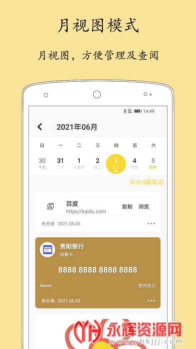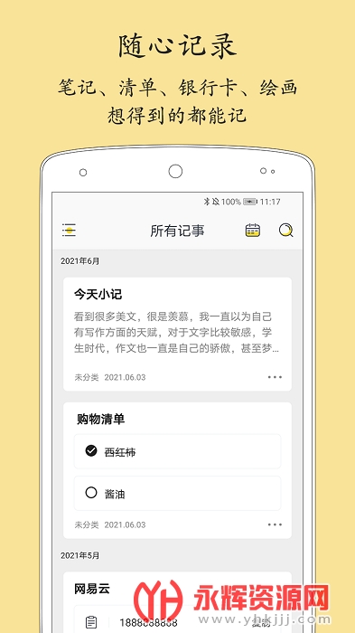 轻记事本是一款非常好用的备忘录记事软件,这款软件的界面十分简洁,各种功能一目了然,用户们可以在这里记下各种重要的事件内容,想得到的都可以在这里记下!方便随时查看了解,不会错过各种重要的事情!欢迎感兴趣的朋友们前来永辉资源网下载!