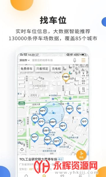 2、智能:可预先查询目的地周边的停车场信息,包括剩余车位、收费情况等