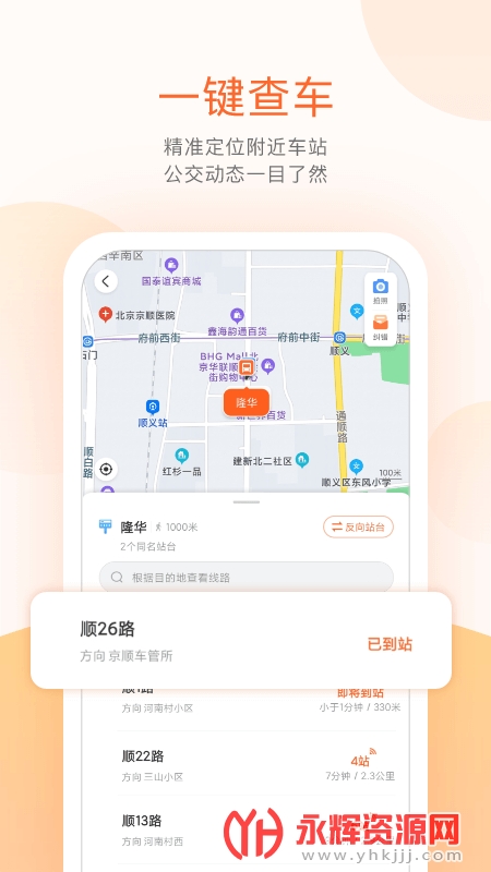 北京顺义公交实时查询app是为北京顺义当地居民朋友们提供的智能公交服务软件,在这款软件中你能查询公交车的实时到站情况,来让你合理安排出行时间。快来永辉资源网下载体验一番吧!