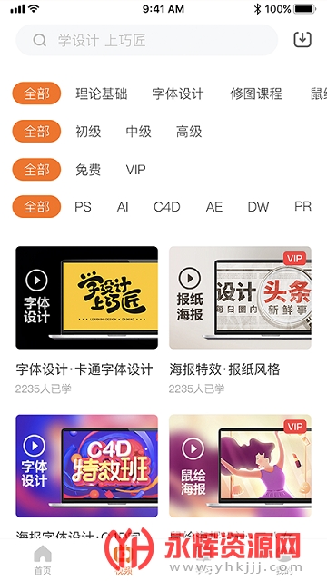 拥有海量设计专业相关的教学视频教程和精品课程等你来免费的学习。