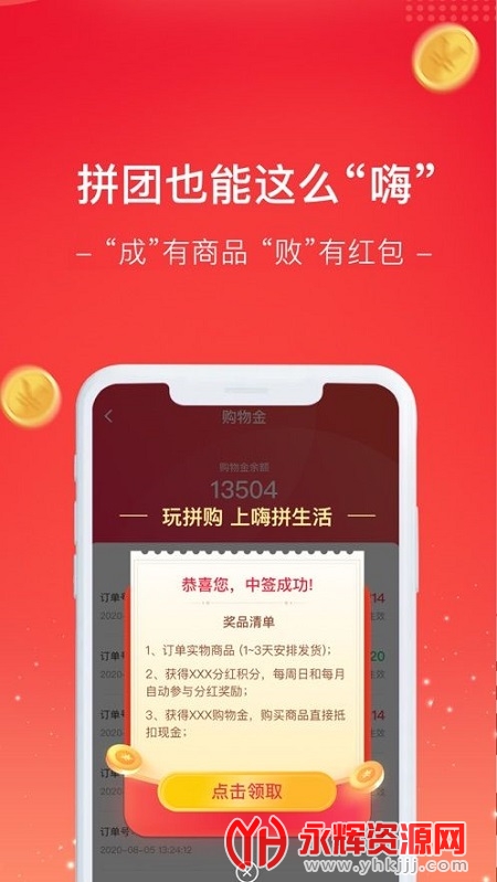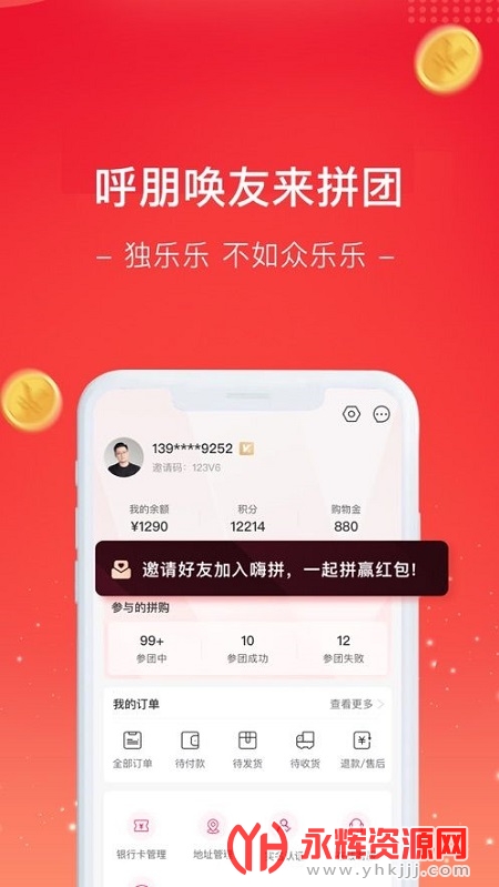 嗨拼生活app是一款全新推出的拼团购物软件,软件中每天都有各种商品的拼团购物活动,在这里进行购物都是非常实惠的,还能赚取到商品返利哦。喜欢购物的宝贝们别错过了,快来永辉资源网下载吧!