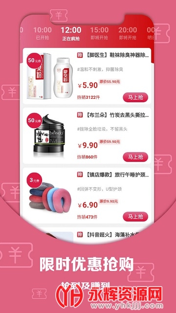 爆款商品秒不停,每日整点限时来领。