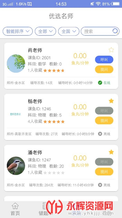 此应用分为4个部分,首页、错题本、求助、个人中心:主要是面向小学、初高中学生 在线问题求助及老师在线课程教育的一个软件,课鱼时间学生端有雄厚的师资力量、众多的一线高级、特级教师在线辅导答疑、为学子提高成绩保驾护航。
