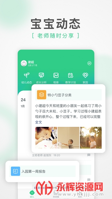 老师会记录宝贝在幼儿园成长的点点滴滴,让家人随时关注宝宝表现;