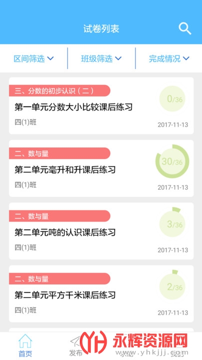 主要辅助老师教学,通过课后作业练习,随时掌握学生学习掌握效果,系统会自动收集学生完成的作业并对作业进行批改,用户只要打开图表就能看到详细的数据信息,同时系统也会分析学生的考试成绩,分析我班学生掌握薄弱的知识点。