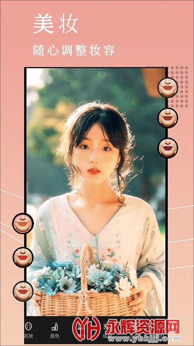 美白、腮红、牙齿美白等秀丽的脸部滤镜。