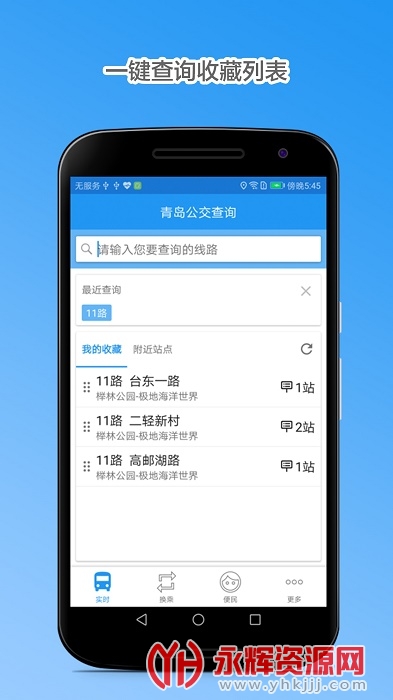 青岛公交查询app专为青岛本地用户打造,是一款非常好用的掌上公交出行软件,软件上收录了本地的所有公交信息,包含了公交站点、换乘路线和实时公交信息等数据,用户们可以随时在线查看详细的公交信息,让出行变得更加方便快捷!欢迎感兴趣的朋友们前来永辉资源网下载!