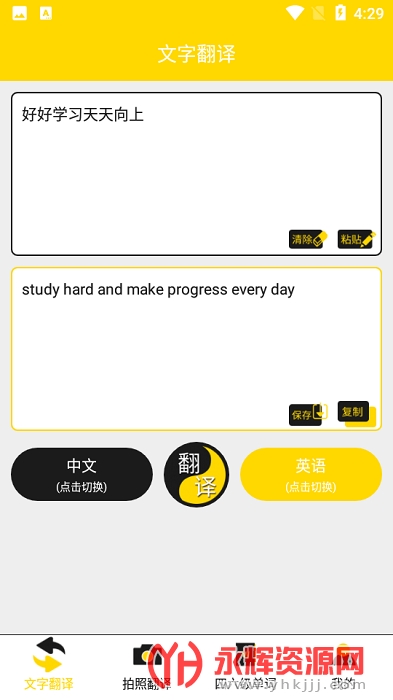 文字翻译:多语言互译,支持朗读和复制翻译文字。