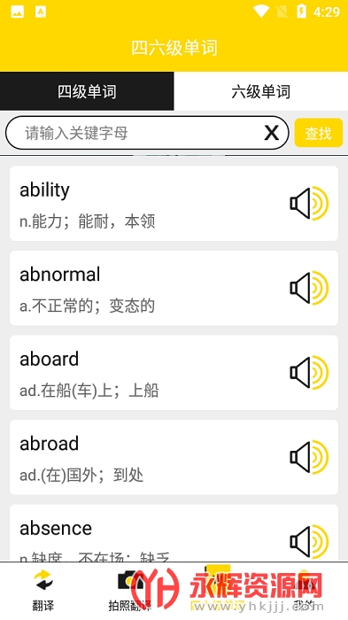 四六级英语单词:轻松学习朗读查找四六级词库。