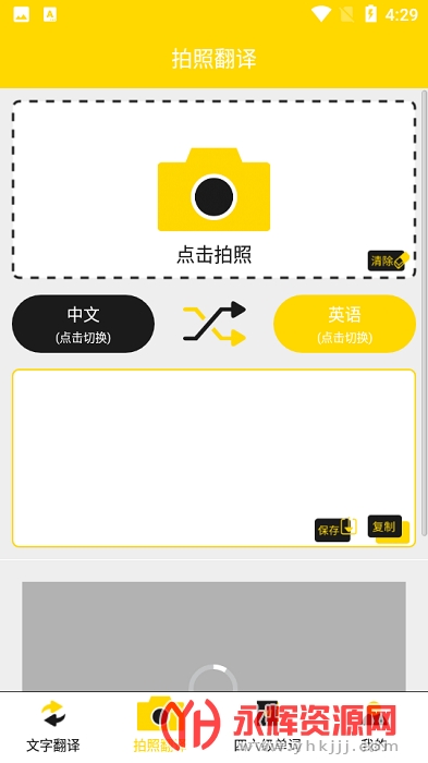 拍照识别出图片上文字进行翻译,快捷方便不用再每个字输入。