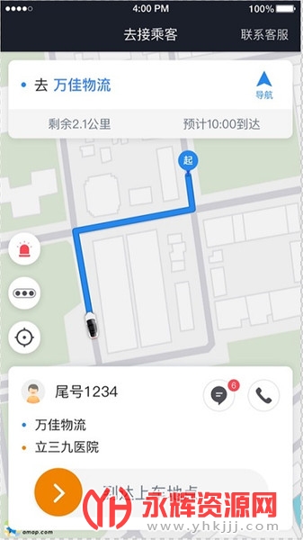 5、司机接单以后,可以按照导航提示到达对应的上车地点等待乘客上车