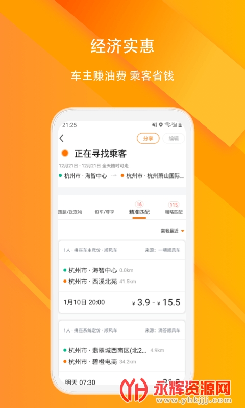 3、实行智能匹配行程,让车主和沿途乘客乘坐普通车辆出行。