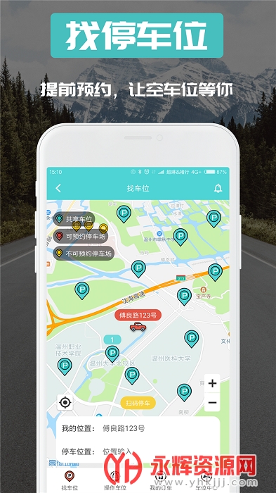 找停车位:提前预约车位,让空车位等着你,告别找不到车位的苦恼。