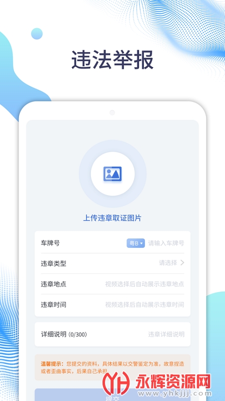 随车拍app是为广大朋友们提供的交通违法举报软件,使用这款软件绑定设备能够让你更好的进行拍摄,有需要的朋友们快来永辉资源网下载吧!