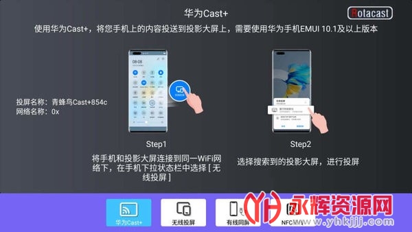 支持华为和部分荣耀手机,以及华为智慧屏等设备,也能让更多第三方投影显示设备融入华为生态。