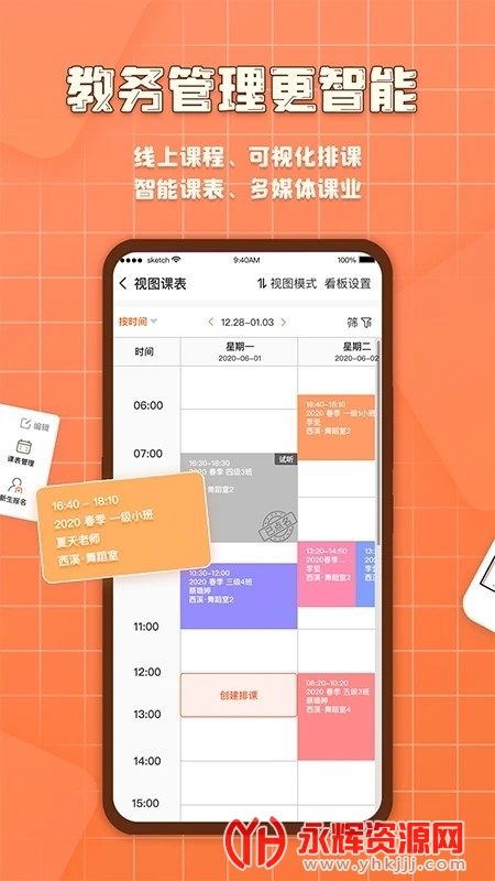 1、随时查看老师课程表,调整日常工作计划课程 安排及编辑内容。