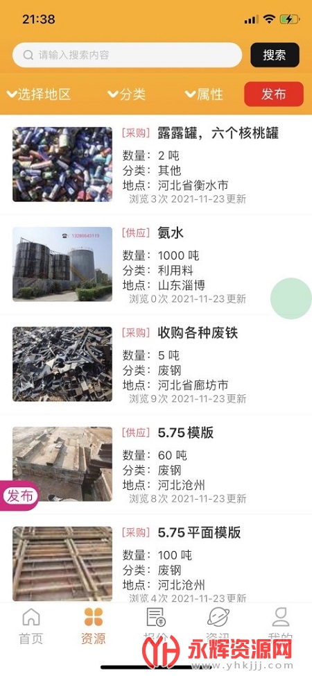包括但不限于废铜报价、废钢材料、塑料报价、以及废料金属等等的资源信息。