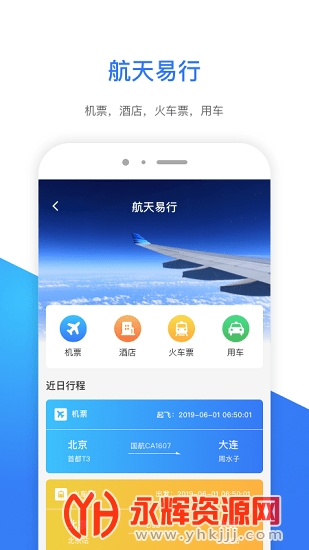 【机票】:包括国内全部航线的单程、往返机票;在线退票、改签等操作。航天易行拥有自己的黑屏系统,直连中国民航航班的实时数据,退改签政策与航空公司完全一致,减少用户的退改签损失,真正做到价格透明、规则清晰。
