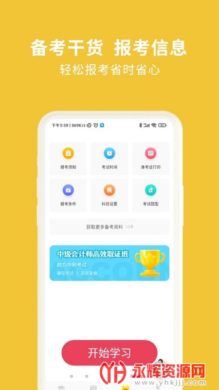 中级会计职称考试新题库app是为想中级会计资格证的朋友们提供的学习刷题软件,软件中有着多种学习模式提供给大家,你可以在这里免费进行学习。有需要的朋友们快来永辉资源网下载吧!