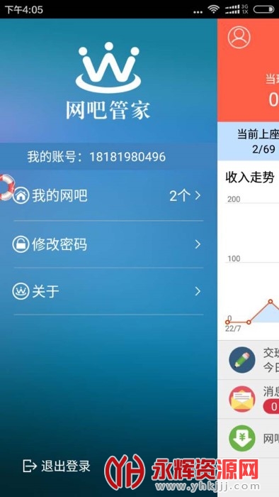 网吧管家app是专业的网吧管理软件。可以帮助网吧管理员随时随地查看经营状况,实时掌握上网人数及消费详情,还可以准确记录网管的交接班时间。为网吧经营者带来方便快捷的管理平台。