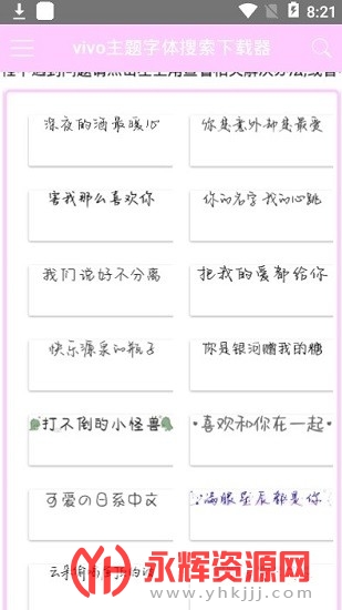 小海vivo主题字体提取工具是一款非常不错的手机字体美化修改工具软件,软件中为用户提供了vivo手机的各种字体和主题可以使用,帮助用户来美化自己的手机,特别的方便,有需要的朋友就快来永辉下载体验吧!