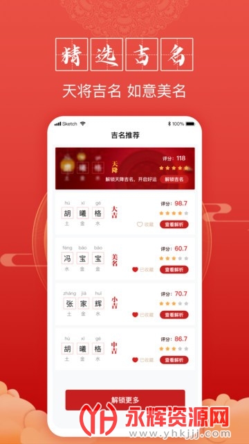 5.起名解名的历史记录符合用户的使用习惯,并且提供收藏名字为准爸妈提供方便。