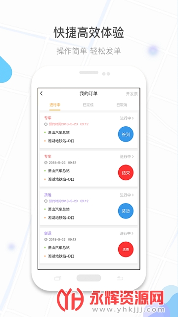 智能接单:司机开启接单后,系统智能计算出其周围货物并派发给司机,解放司机双手。