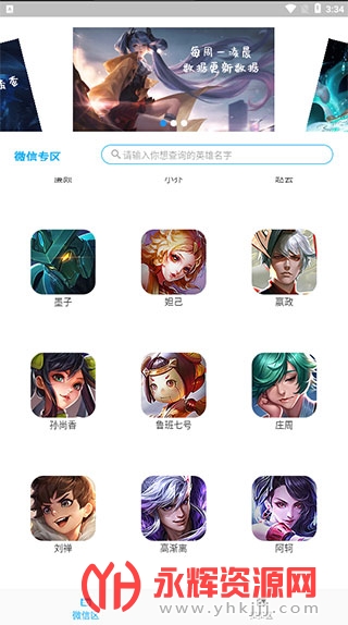 直接搜索目标英雄名称,点击头像便能查询,软件每周一都会更新数据