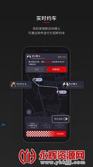 实时发现附近的骑士,可通过软件进行打招呼约车。