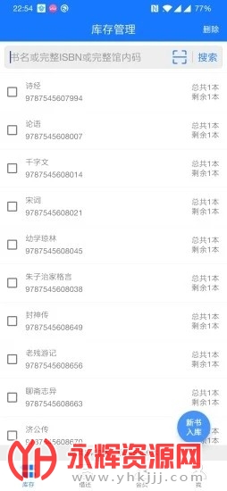 2、随时可以办理图书入库,只需扫描图书的isbn码即可快速录入;