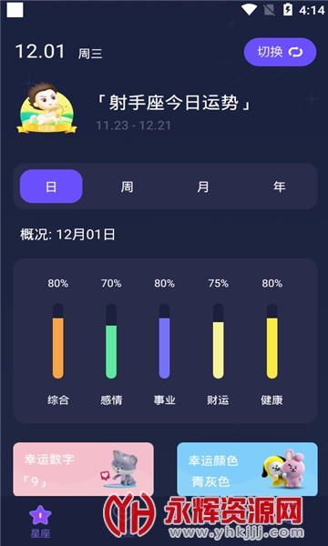 星座合盘app是为广大朋友们提供的星座占卜软件,使用这款软件能查询到各个星座的近期运势,还能学习到许多关于星座的小知识。快来永辉资源网下载体验一番吧!