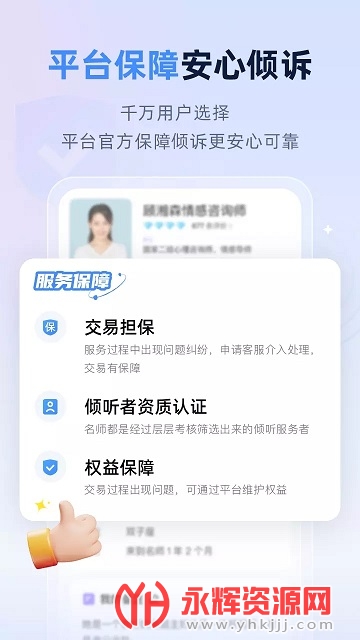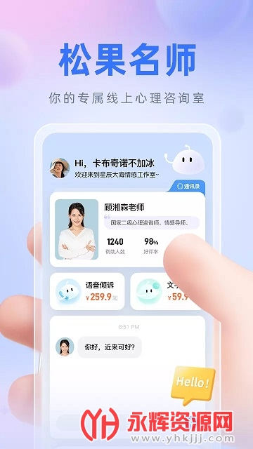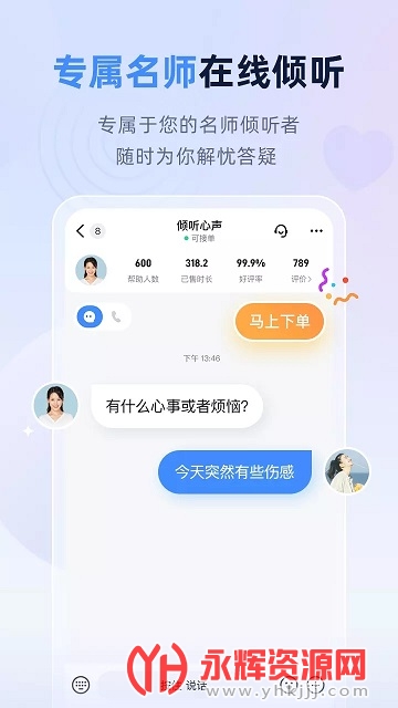你的专属线上心理咨询室,用户通过这款软件,可以咨询心中存在的问题,解决生活、工作上的压力,还是很不错的。