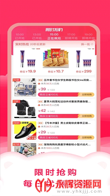 这里覆盖的种类非常的多,今日爆款等各种优惠券可以免费用,一键分享商品给好友,最热最火的产品。