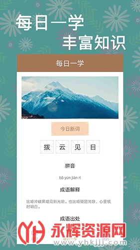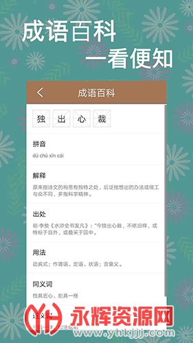 软件中的每一个成语都有对应的词义分析,可以在线查询。