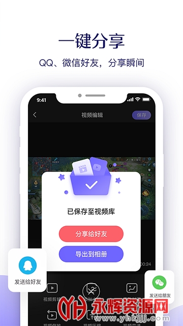 一键导出制作好的高清视频保存在手机相册,直接分享好友,让小伙伴见证你的精彩吧。