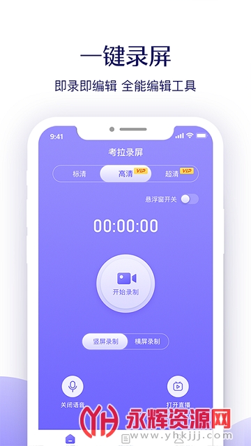 考拉录屏是一款非常不错的手机录屏辅助工具软件,软件中为用户带来了非常多样的手机录屏模式,帮助用户轻松录制下自己想要的画面和视屏,特别的方便实用,有兴趣的朋友就快来永辉下载体验吧!