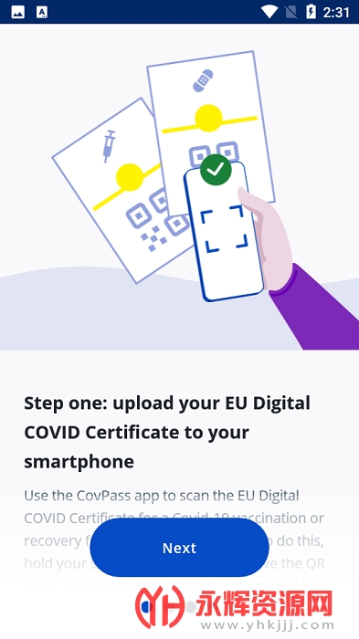 在您手机成功安装CovPass app后,您需要得到您的专门的新冠注射证明后,才能设置app,生成健康证书。