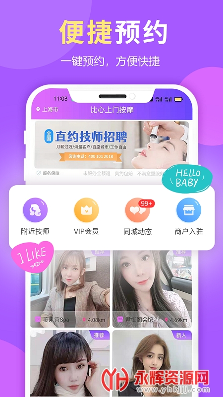 比个心按摩app是为广大朋友们提供的上门按摩服务软件,软件中有着超多的专业技师,你可以预约技师进行上门按摩服务,让你得到很好的方式。有需要的朋友们快来永辉资源网下载吧!