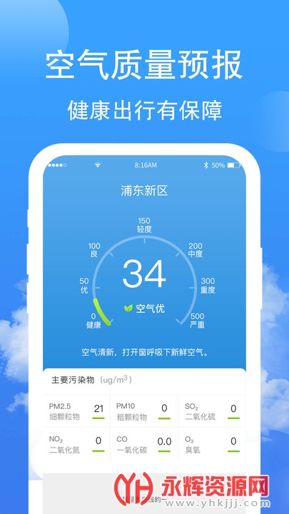 空气质量指数、温度趋势、pm2.5等全面天气信息;