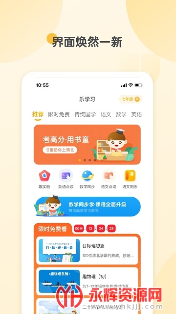 提供十大类别,5000多堂的学科精品在线学习视频课程,及数款学科辅助应用,为各年龄段的孩子提供精准的学习辅助。