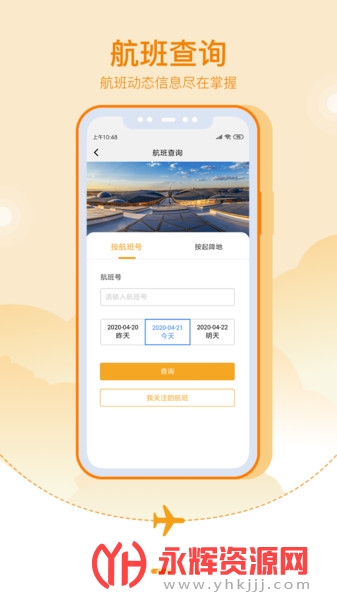 航班查询:向旅客提供全面的航班查询功能,可对查询结果进行关注,旅客可收到系统推送的航班动态变化消息;