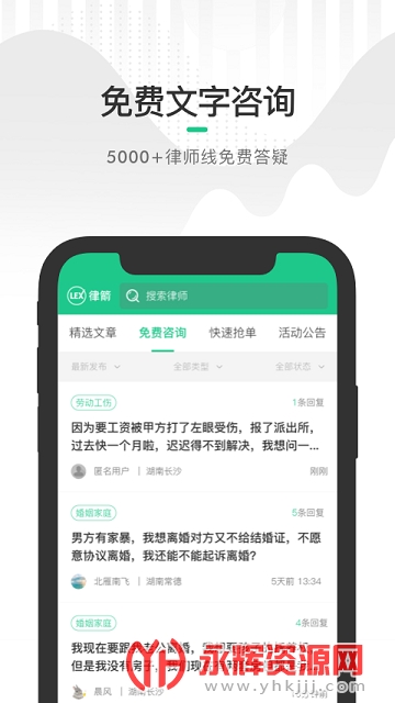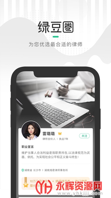 绿豆圈法律服务平台是一款非常专业的法律援助服务手机软件,软件通过了互联网大数据技术为用户整合了丰富的律师资源,平台上拥有专精各方面法律的律师给用户选择,帮助用户通过合法的方式来维护自己的权益,有需要的朋友就快来永辉下载体验吧!