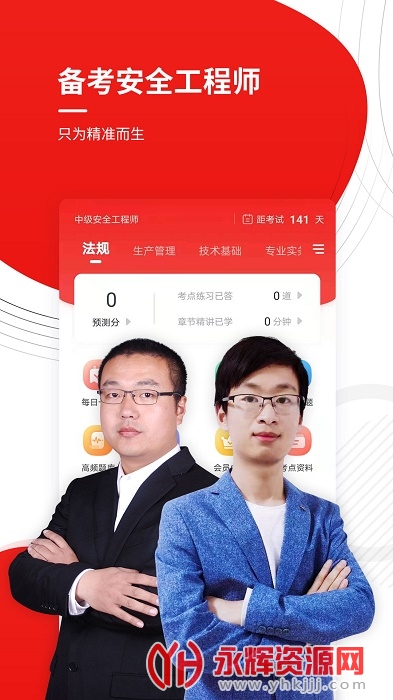 安全工程师准题库app是一款专为安全工程师打造的学习备考软件,软件上有着海量的学习资源,众多的优秀名师在线课堂,帮助用户们答疑解惑,解决各种学习难题,让学习变得更加轻松高效!欢迎有需要的朋友们前来永辉资源网下载!