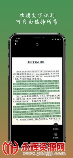 手指流畅顺滑,即可分块选择需要的文字,想要哪段点哪段(想查看所有文本,不需要按行点选);识别结果可编辑且选择复制到各种app中使用,支持微信、qq、有道云、印象笔记等软件。