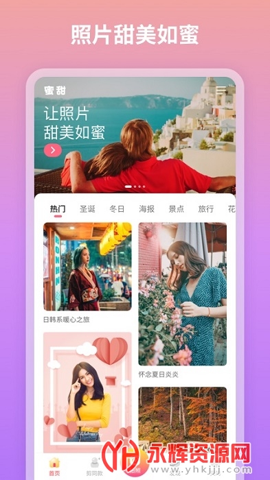 蜜甜修图拼图app是一款非常好用的图片编辑处理软件,这款软件的功能十分强大,支持智能抠图、多种滤镜特效和自由拼图等等,可以帮助大家轻松的进行图片编辑,一键制作出各种精美的图片!欢迎感兴趣的朋友们前来永辉资源网下载!