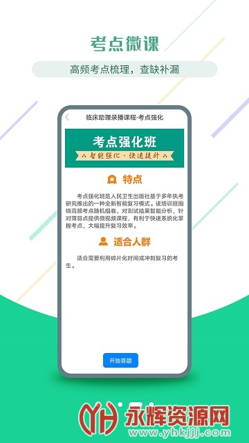 在线答题,随学随练 移动学习客户端配套人卫社独有核心题库,自动批阅判分,如实记录每次答题过程,及时巩固学习效果,强化知识点记忆,发现不足查漏补缺。