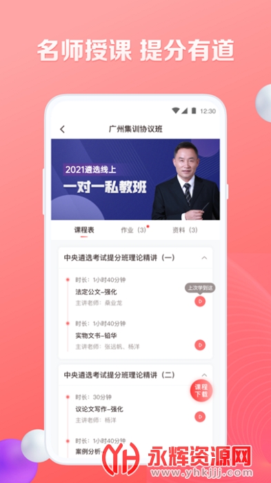 华图遴选app是偶一款针对公务员考试的学习软件,软件上有着海量的学习资源,包含了众多的免费直播课程,有着众多优秀名师在线指导,帮助用户们快速的找到适合自己的学习方法,让学习更加轻松高效!欢迎有需要的朋友们前来永辉资源网下载!