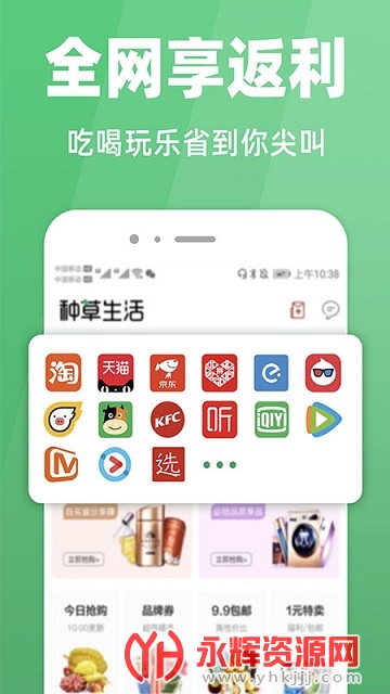 种草生活,淘宝天猫购物省钱返利app。手机购物领优惠劵再下单,更低折扣后再将返利金额返还给用户,用种草app,网络购物,天天尽享双11的优惠,全年低价。