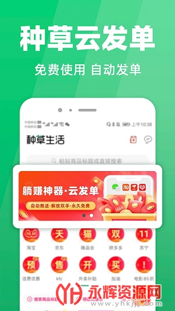 种草生活,软件部不断上线各种活动福利,团购促销、一元特卖、全球购、打折优惠券、低价好物、免费赠送、快速提现、限时优惠、九九包邮、网红推荐,一切尽在种草app。